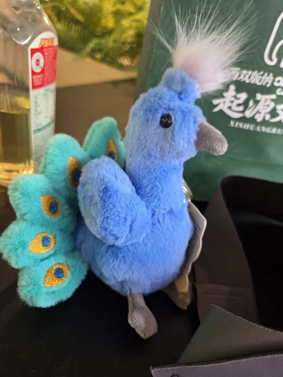 这只蓝孔雀毛绒挂件,像把西双版纳的灵动与温柔都揉进了绒毛里。