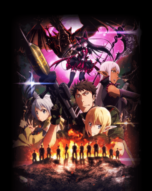 动画改编自柳内巧的同名轻小说,故事描绘了20XX年,突如其来的“通往异世界的门”在东京银座出现,从中涌出来了大量怪物和军队。而陆上自卫队在击退它们的同时,还赶赴了门另一边的“特区”。于是,担任了第三侦察队指挥的二等陆卫的宅男伊丹耀司,与帮助被巨大炎龙袭击的村民们时,与精灵、魔导师和亚神等异世界的美少女们之间产生了奇妙的交流……