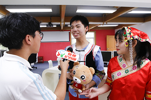 上个采访一结束,两位穿着少数民族服装的同学便向我们走来,主动分享道:我们表演的是二重唱。虽然我们排练时遇到了很多问题,比如我们双方缺乏互动,歌曲的完整度不够等,但经过老师的帮助后我们的问题都得到了解决。今天我们是第三个上台,我相信我们可以以自己最完美的状态完成表演。
