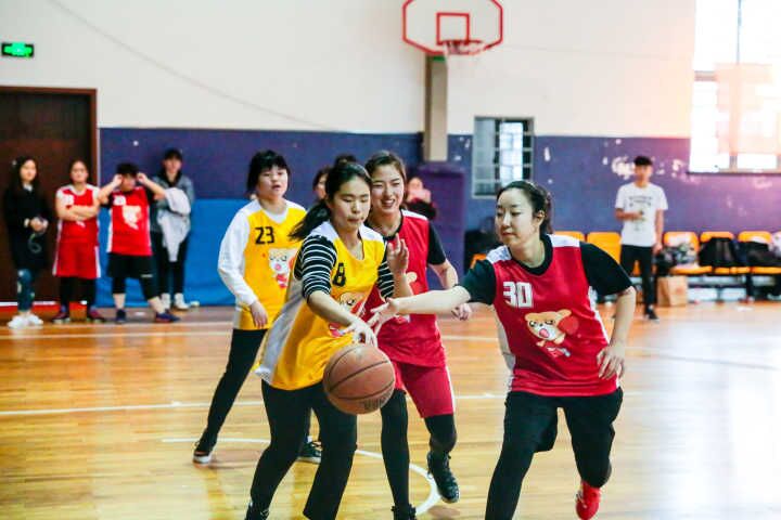 (黄色球服为我校女生球队)