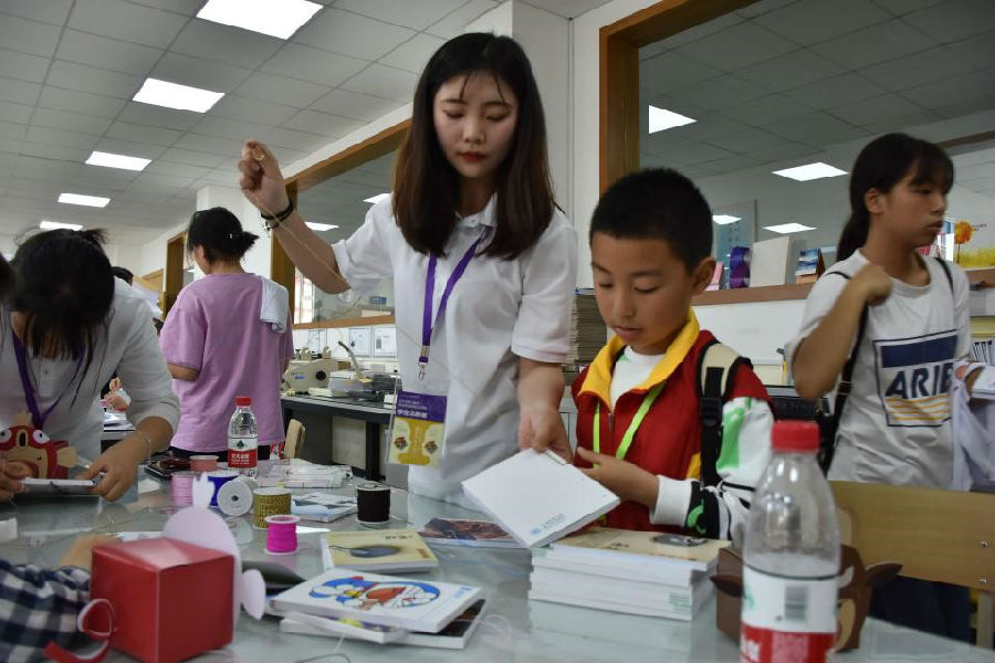 书业小达人更是深受好评,在那里大家可以通过自己的双手自己设计成自己喜欢的书本,自己缝制古装类型的书本。体验者们不仅可以得到自己喜欢的书本还可以观赏到印刷的工艺流程。