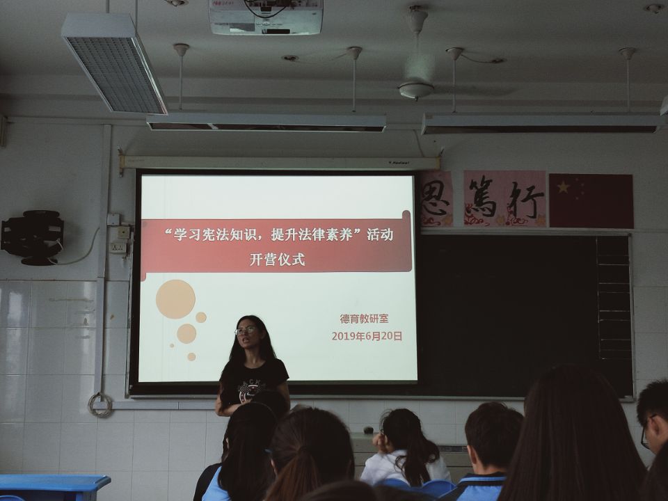 在2019年6月20日星期四下午三点四十分,在我校教学楼四楼举行了“学习宪法知识,提升法律素养”活动开营仪式。