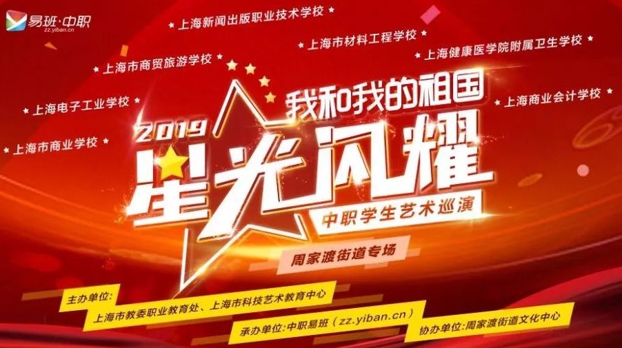 2019年10月13号下午2点位于齐河路508号,开展了以“我和我的祖国”为主题的中职学生艺术巡演。为庆祝建国七十周年,让公众更好地认识中职学生、了解职业教育。本次活动由上海市教委职教处、上海市科技艺术教育中心、上海中职易班共同组织。参与本次活动的为上海健康医学院附属卫生学校、上海新闻出版职业技术学校、上海电子工业学校、 上海市商贸旅游学校、上海市材料工程学校、上海市商业学校和上海商业会计学校七所学校的易班成员以及相关老师。一起为周家渡街道的居民们带来精彩的表演。