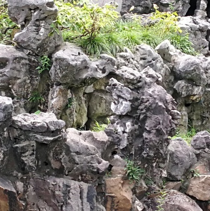 池中有一座大假山,说它有十几米高还绰绰有余。这可是明代江南叠石名家张南阳设计,用数千吨武康黄石堆砌而成。两三条小径从池中架起,曲曲折折,把大假山与仰山堂连接在一起。假山山前山后全是奇花异草,郁郁葱葱中又点缀着几处雕梁画栋,美不胜收。