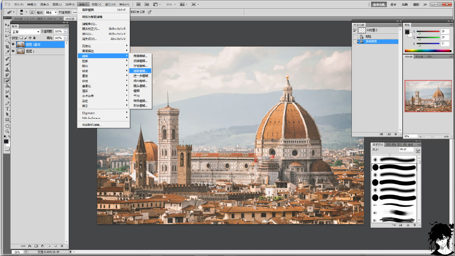 第三步:复制高斯模糊后的底图,然后把复制完的底图和玻璃素材合并。