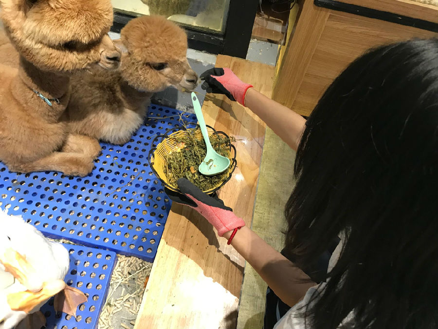 我们看见一家“小型动物园”里面的人说我们可以花四个人的价钱进去玩,撸许多的小动物,我听见有羊驼我就特别心动,我们就花了大价钱进去撸了一个多小时的小动物,真的满满的少女心爆棚!真的是太可爱了,就连我们这里唯一一个男生都受不住小动物们的可爱!