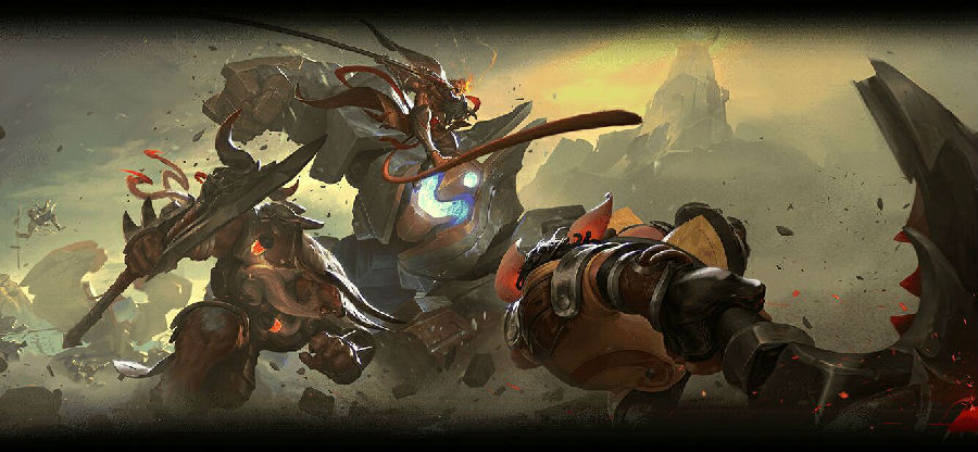最终诸神的分歧逐渐演变为赤裸的裂痕,帝俊的追随者发动叛变,诸神之战随之打响。两派神明分别利用红蓝之力打造了两座战争机器 机关巨人和苍狼。这场诸神之战以帝俊失败而收场,机关巨人和苍狼的遗骸变成了如今的王者峡谷,反观所有神明已经几乎不复存在,女娲也奄奄一息,她用尽最后的力量将方舟核心封印并将钥匙分散到了十二大奇迹中,女娲在长眠中期盼着有一天有人可以打开方舟核心发现其秘密,用来建造文明而不是据为己有。一个时代就此陨落。