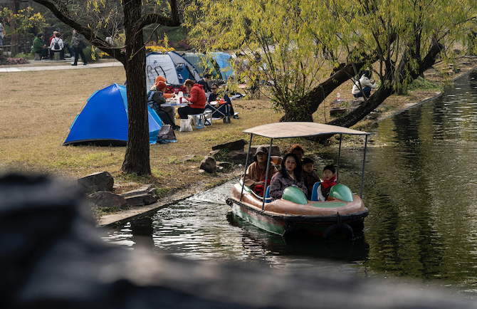 每年深秋是上海共青森林公园最美的时节,在冷风里,翠绿的杉树叶开始逐渐变黄、变红。绣红色的杉树林在阳光的照射下,将公园景色妆扮得光彩夺目。