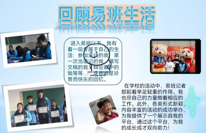 同学们都知道换届意味着新的可能和开始,青浦校区的学生更加注重对自我的检讨与展望:回顾总结在易班工作中积累的经验以及增长的能力,分析自我不足之处,同时信心满满地展现出自己的优势,表达了想要竞选的职位。乘风破浪潮头立,扬帆起航正当时。新鲜血液早已蓄势待发,做好了平衡工作与学习的时间的准备,同时也准备好接过学长学姐们手中的接力棒,搭载着梦想和期许,继续向前进发!