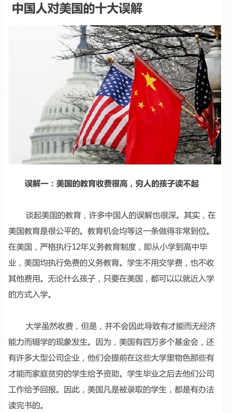 中国富豪来到美国,看见美国街头有乞丐在讨钱,财大气粗的富翁一下就给了乞丐100美金。然后,中国富豪趁机问美国乞丐说:“美国也有要饭的?”没想到美国乞丐回答:“中国也有大富翁?”这虽然是个笑话,但从中可以看出中国人和美国人存在着很多误解。。。