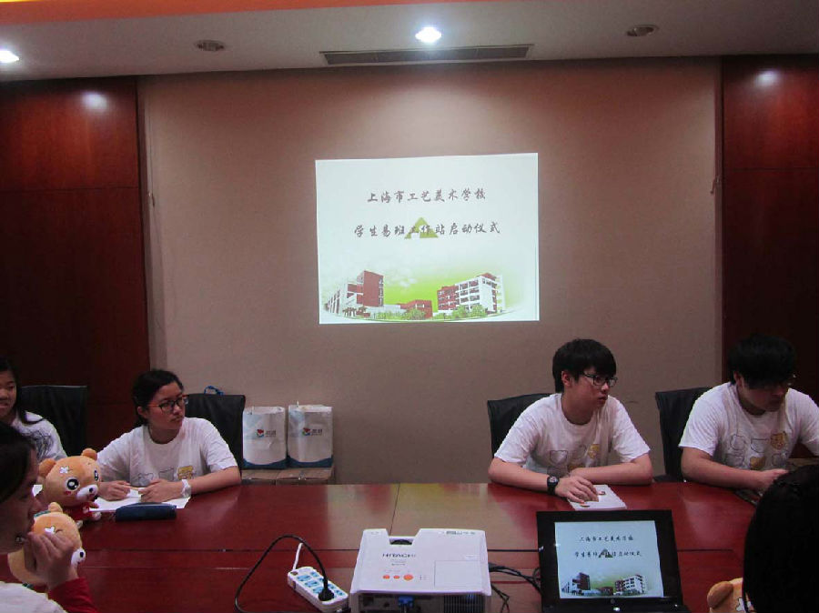 2014年5月19日,上海市工艺美术学校学生易班工作站启动仪式在中职楼M404学生活动中心隆重召开。学校团总支书记黄颖雯老师、学生科张洁老师、易班技术支持双波老师等出席了启动会议,并为校学生易班工作站成立致辞。
